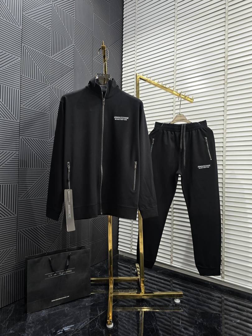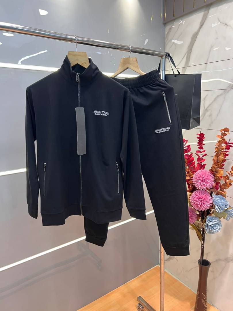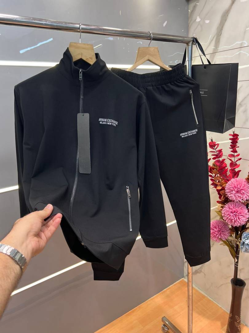 Arman i Exchange Black Premium Imported Fabric Emboss Logo Zipper style Tracksuit 3582